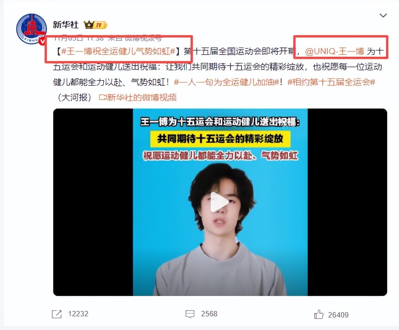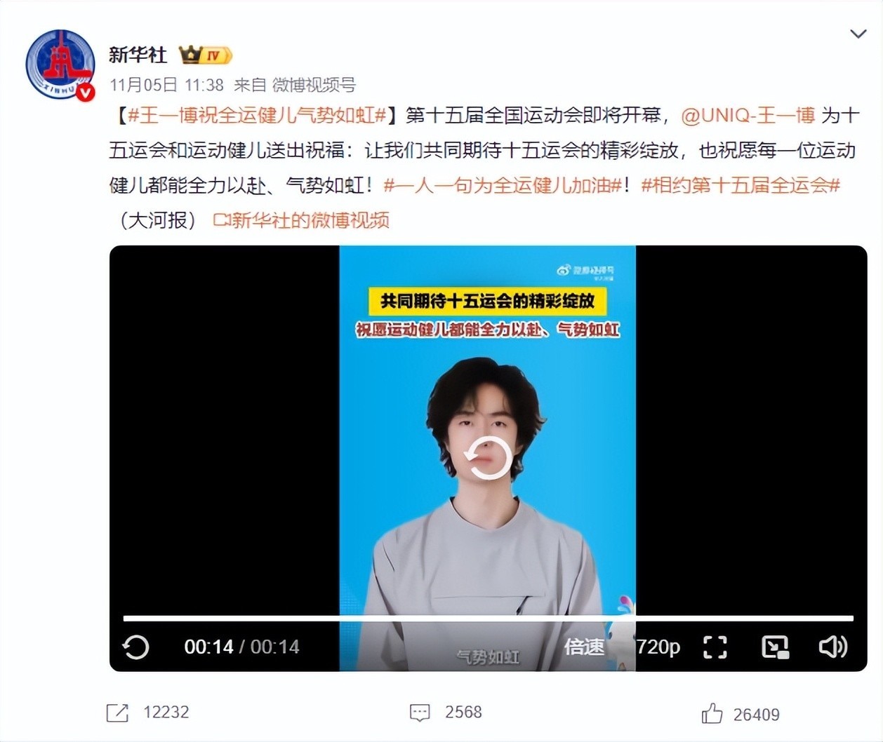 资料参考:新华社|王一博祝全运健儿气势如虹